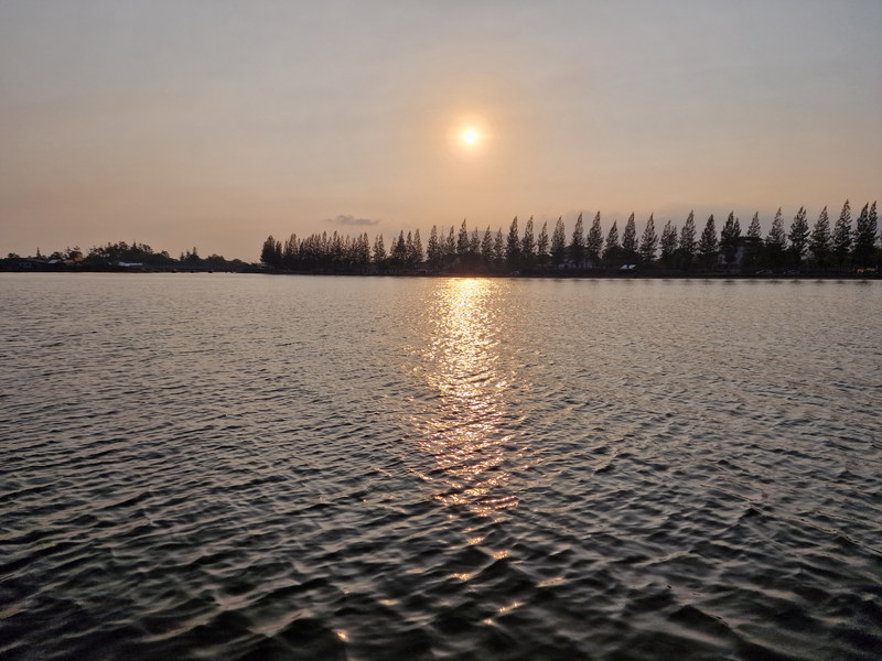 Wir entdeckten im Vorbeigehen in einer der angesagten Restaurant/Bars entlang der Uferprommenade zwei Sitzplätze mit Blick auf die untergehende Sonne.