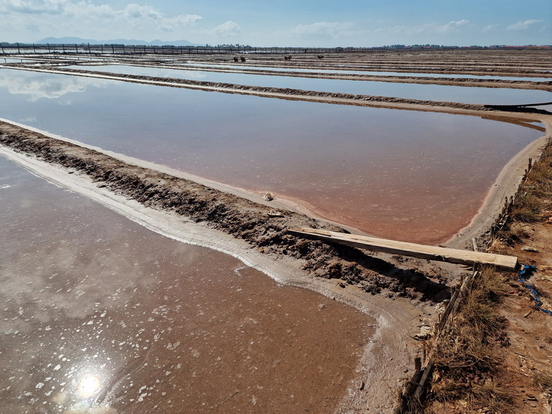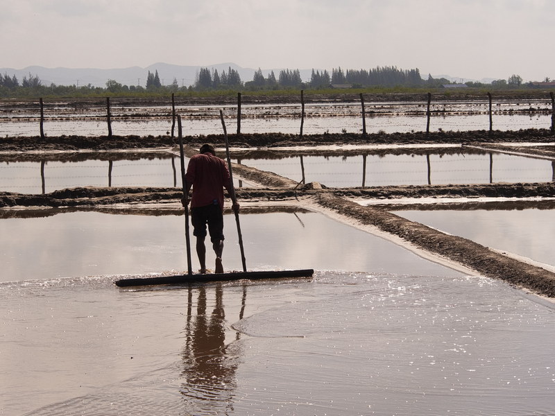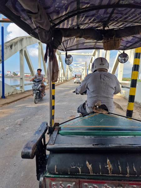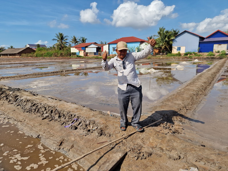 Nach einer halsbrecherischen Fahrt über die schmale Brücke, die nur von Tuk-Tuks genutzt werden darf, brachte er uns auf die andere Seite des Preaek Tuek Chhu. Von dort aus war es nur ein kurzer Weg bis zu unserem ersten Ziel: den Salzfeldern.