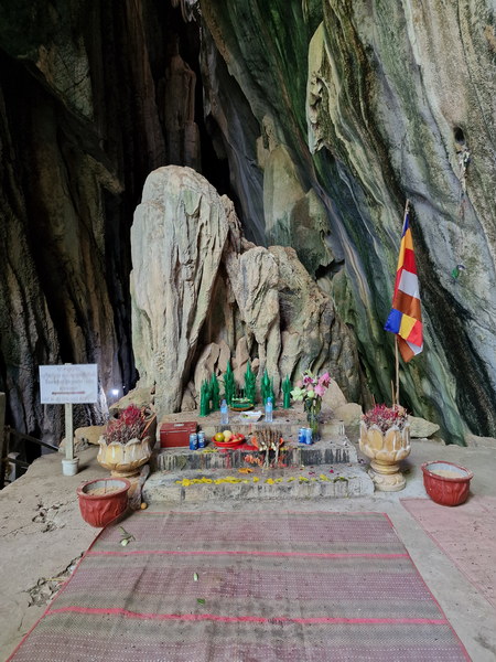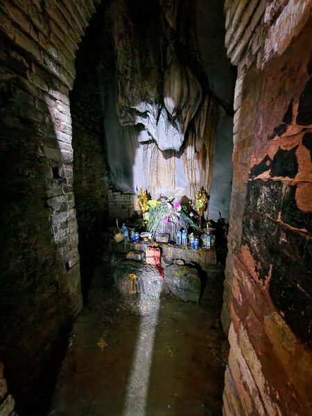 Der Zugang erfolgt über einen steilen Pfad, der mit Steinstufen versehen ist und den Besuchern einen schönen Blick auf die umliegende Landschaft bietet. Um letztendlich zum Tempel zu gelangen, muss man die Stufen in der Höhle wieder hinab steigen.