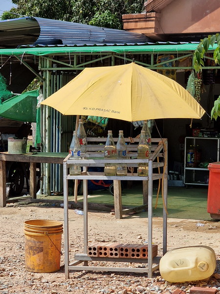 Alle Fahrten durch Kambodscha schienen irgendwie immer rund vier Stunden zu dauern – so auch diese. Unterwegs legten wir, wie üblich, eine kurze Pause an einer Raststätte ein. Unser Fahrer gehörte diesmal zur eher flotten Sorte, doch wirklich schnell fahren kann man auf den kambodschanischen Straßen ohnehin nicht. Wir fühlten uns also trotz zügiger Fahrt sicher.
