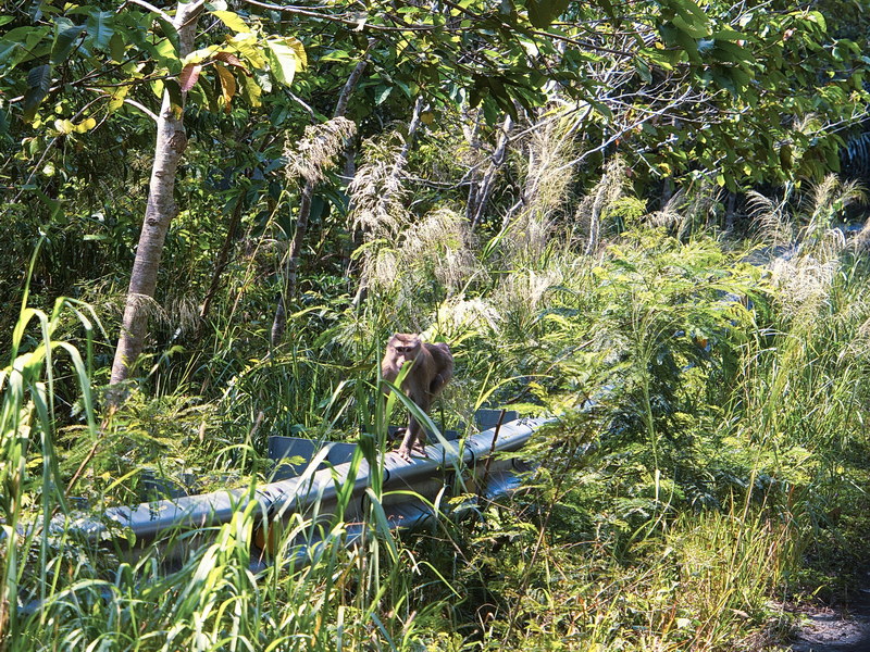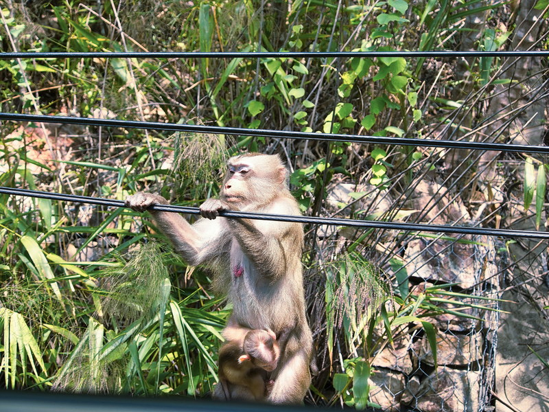 Auf dem Weg zurück ans Auto fielen uns dann auch schon die ersten Langschwanzmakaken auf.