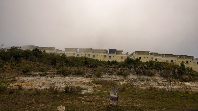 Sie legten sich wie ein grauer Schleier über die Landschaft und tauchten die neuen, wuchtigen Betonbauten der chinesischen Investoren in ein fast gespenstisches Licht. Ungewohnt für uns: Der Nebel war nicht kühl, sondern fühlte sich eher nach Waschküche an.