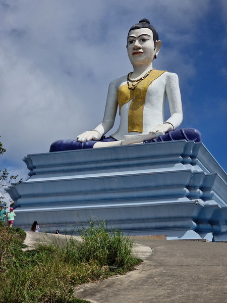 Zirka 15 Minuten später stoppte Dara am Fußte einer riesigen, wie wir dachten, Budda-Statue. Erst bei genauerem Hinschauen konnten wir erkennen, dass es sich um eine Frauengestalt handelte. Wir standen am