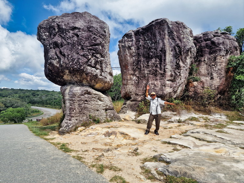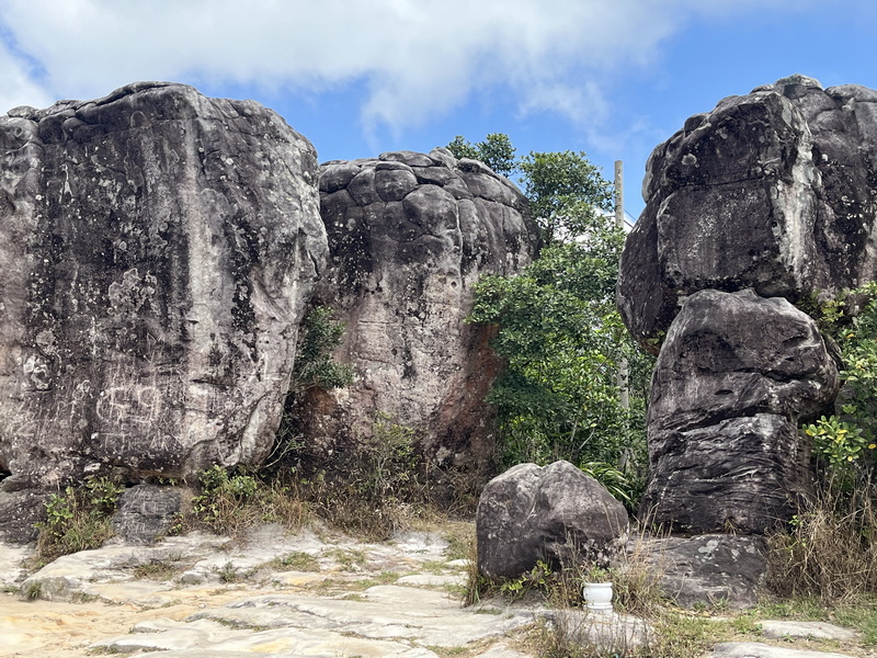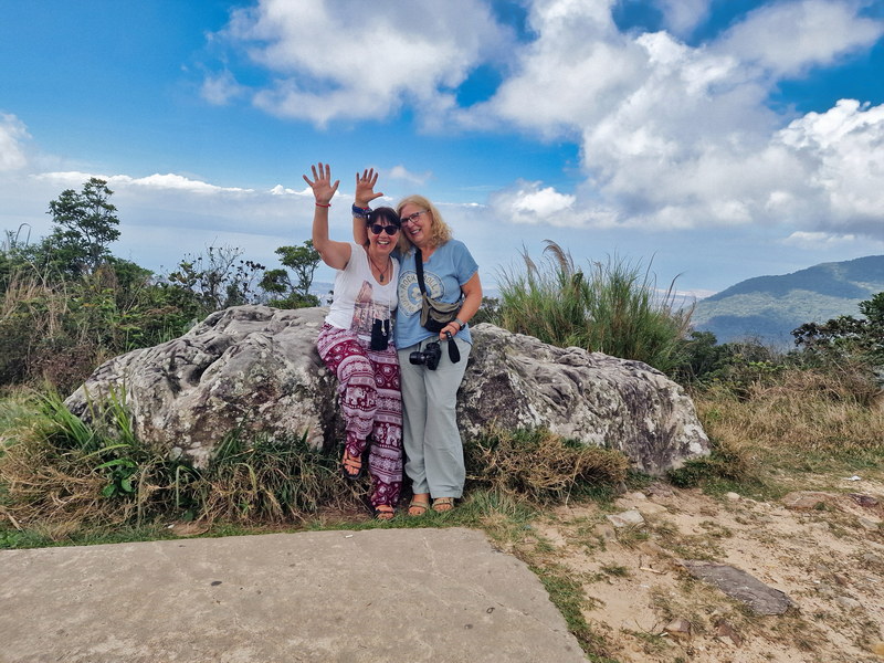 Ganz angetan waren wir von den wuchtigen Felsblöcken auf diesem Plateau, gleich neben der riesigen Frauengestalt. Wegen der mangelnden Aussicht müsst ihr euch mit uns als Motiv begnügen.