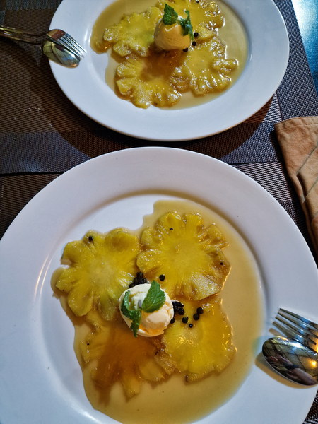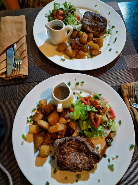Zum Abschluss unseres Kampot-Aufenthaltes entdeckten wir in einer kleinen Seitenstraße, unweit unseres Hotels, ein unscheinbares Restaurant – und wurden dort mit dem besten Essen unserer Reise überrascht. Das Steak war auf den Punkt gebraten, die Soße ein Gedicht, und selbst der Nachtisch übertraf unsere Erwartungen bei Weitem.