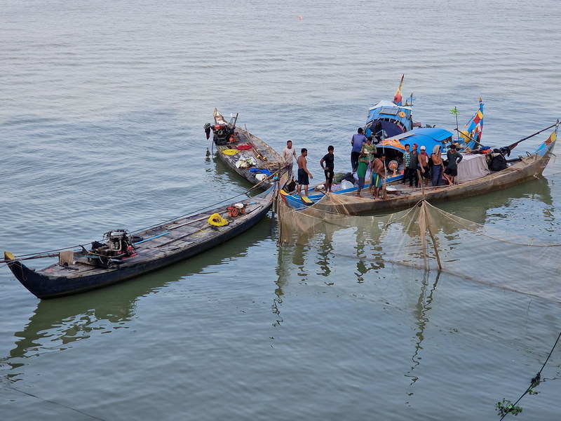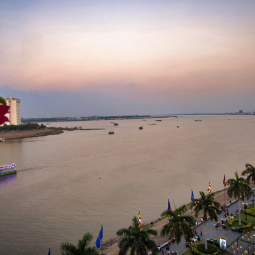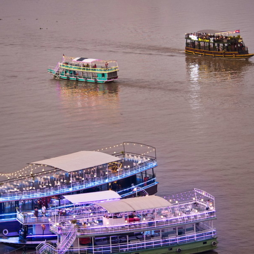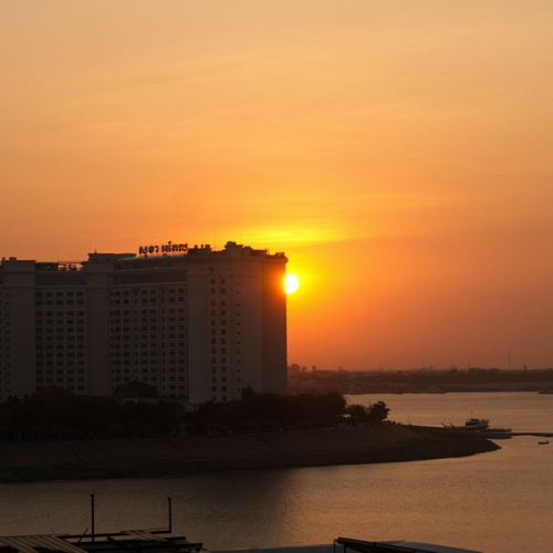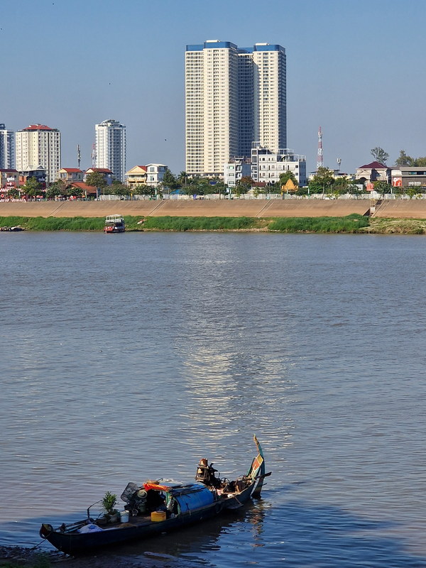 Unsere abendliche Bootsfahrt auf dem Mekong und Tonle Sap bot einen besonderen Blick auf Phnom Penh. Am Ufer zogen Pfahlbauten, Fischerboote und Hausboote vorbei – das Leben am Fluss blieb auch in den letzten Sonnenstrahlen aktiv. Fischer zogen den letzten Fang des Tages ein, andere wuschen sich, oder planschten einfach im seichten Wasser.