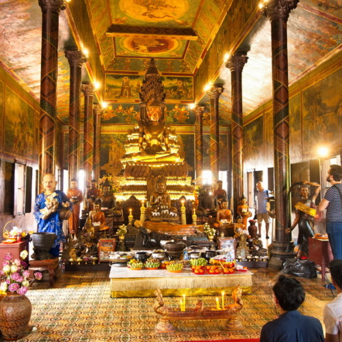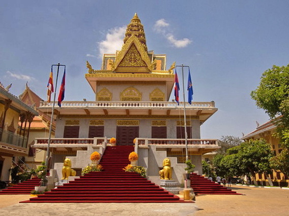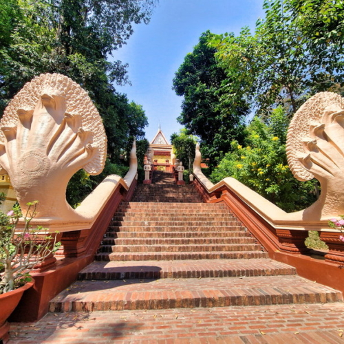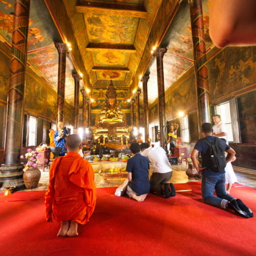 einem der bedeutendsten buddhistischen Klöster Kambodschas. Die imposante Tempelanlage liegt nur wenige Schritte von unserem Hotel und vom Mekong entfernt. Es gilt als geistliches Zentrum des kambodschanischen Buddhismus.