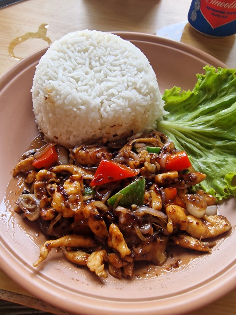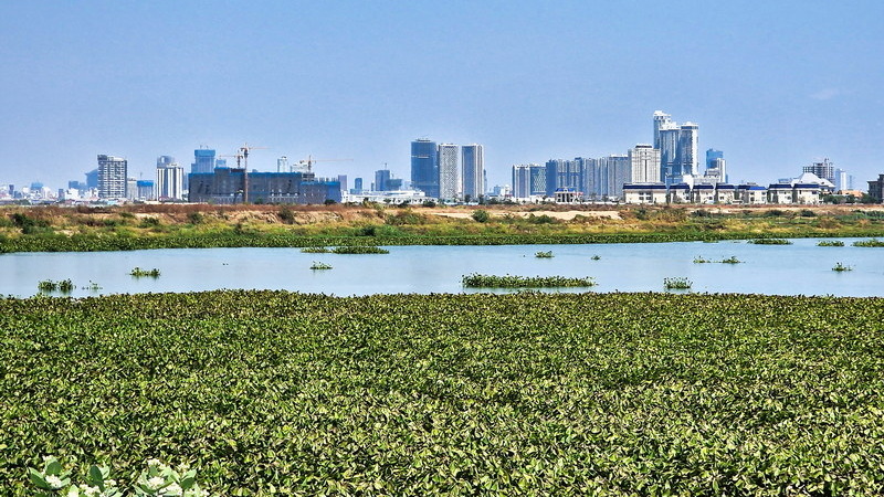 Etwa 15 Minuten vor unserem Ziel hielt Mr. Chang an, um uns auf ein Kraut aufmerksam zu machen, das hier wächst: „Morning Glory“. Mit diesem Begriff konnten wir zunächst nichts anfangen, doch der Blick zurück auf die Stadt war fantastisch. Morning Glory, erklärte er, sei Wasserspinat – ein in der Region sehr beliebtes Gemüse. Natürlich hatten wir es schon gegessen, nur den Namen kannten wir nicht