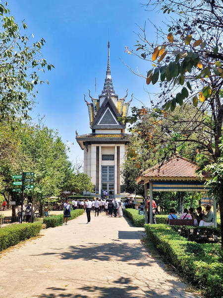 Heute ist das Gelände eine stille Gedenkstätte, die mit einem Rundweg, Schautafeln und den Überresten der Massengräber einen tiefen Eindruck hinterlässt. Im Zentrum steht die markante Stupa, in der über 5.000 Schädel der Opfer aufbewahrt werden.