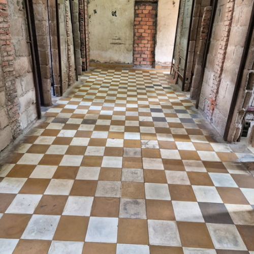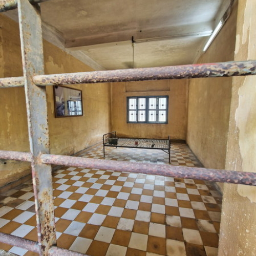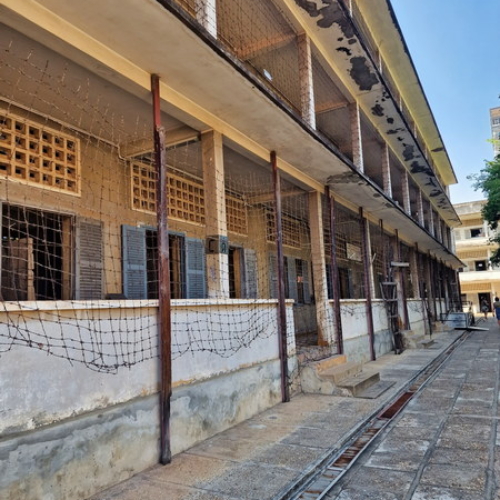Das Gefängnis gilt als Folterzentrum. Wer ins S-21 eingeliefert wurde, galt automatisch als schuldig, oftmals wurden die Geständnisse unter Folter abgezwungen. Der Umfang des Gefängnisses ging weit über das heutige Museumsgelände hinaus und erstreckt sich über das ganze Viertel. Dort waren unter anderem ein Krankenhaus, Felder, Bananenplantagen, in Folterkammern umgewandelte Häuser sowie Unterkünfte für das Personal zu finden…Weiterlesen auf Wikipedia.de