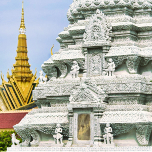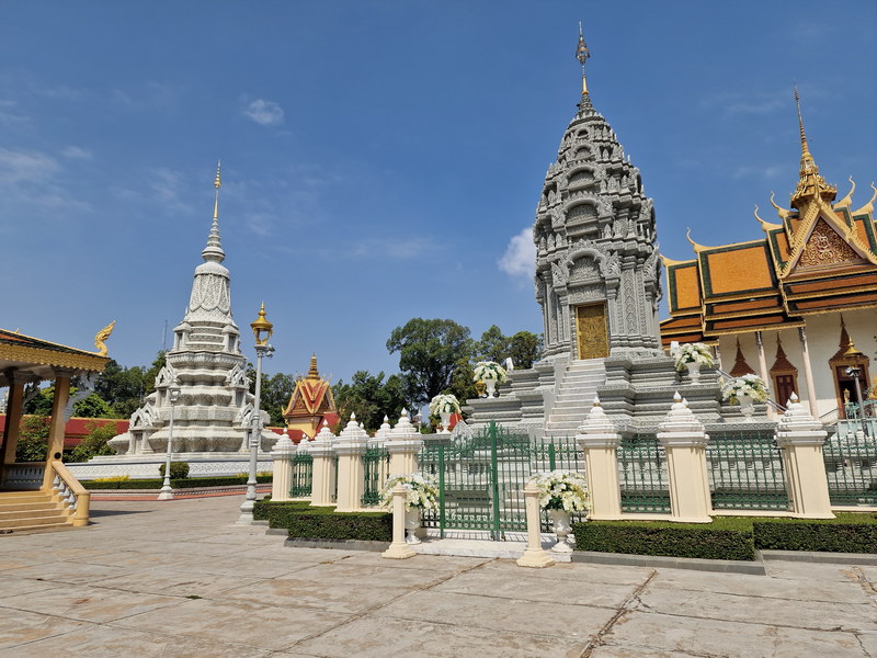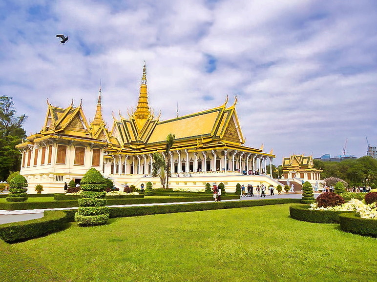 Die Anlage besteht aus mehreren Gebäuden mit vergoldeten Dächern, reich verzierten Fassaden und gepflegten Gärten. Besonders beeindruckend ist die Thronhalle, die bis heute für offizielle Zeremonien genutzt wird. Ebenso sehenswert ist die angrenzende Silberpagode (Wat Preah Keo Morakot), deren Fußboden mit über 5000 silbernen Fliesen ausgelegt ist. Hier befinden sich auch zahlreiche Buddha-Statuen, darunter eine aus massivem Smaragdglas und eine lebensgroße aus purem Gold, besetzt mit Diamanten.