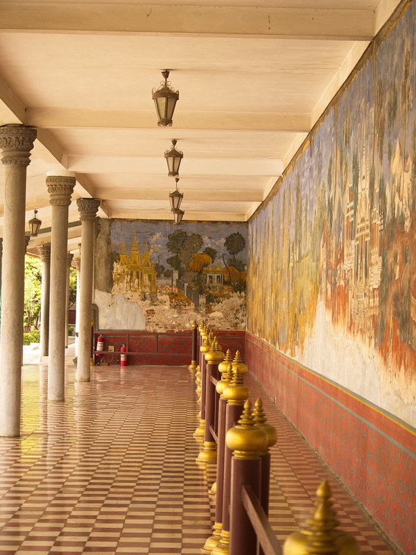 Besonders beeindruckt hat uns das riesige Wandgemälde, das sich entlang der inneren Mauer des Palastgeländes zieht. Es stellt Szenen aus dem Reamker dar – der kambodschanischen Version des indischen Ramayana-Epos.