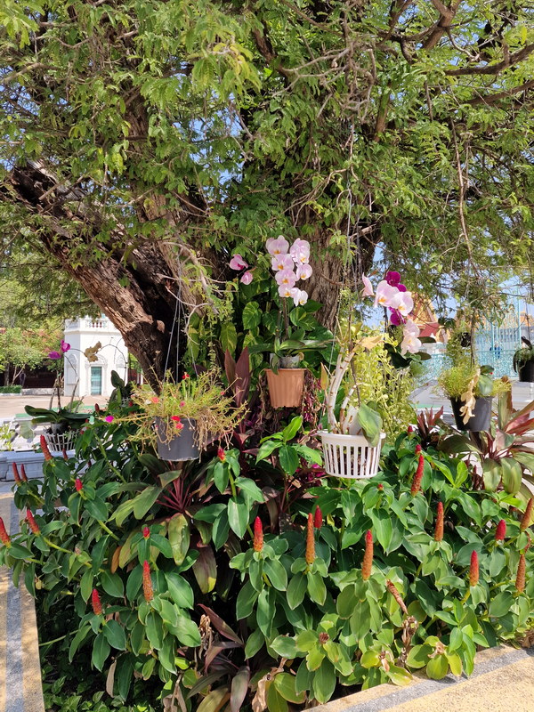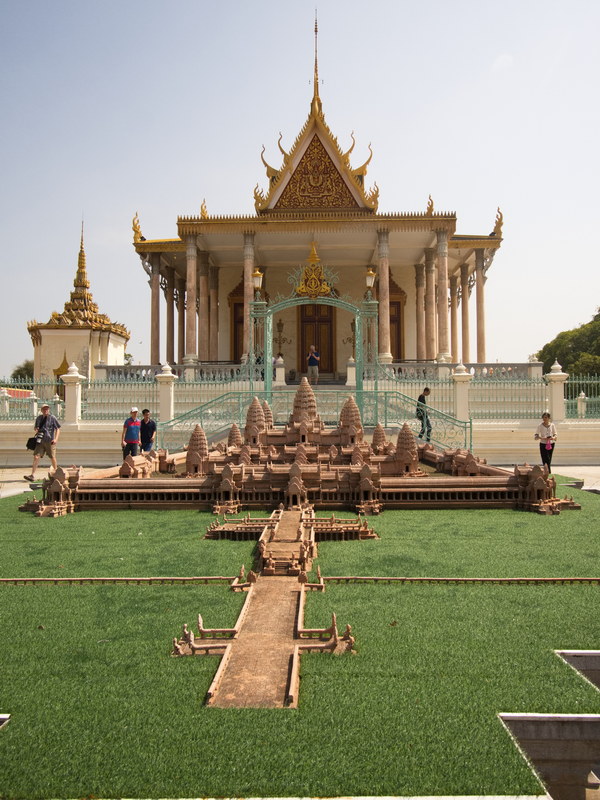 Nicht weit davon entfernt fiel uns – wie schon in Bangkok – ein Modell von Angkor Wat ins Auge. Dies betrachteten wir allerdings nur aus der Ferne. Viel mehr interessierten uns die zahlreichen exotischen Pflanzen und Bäume, die in der gesamten Palastanlage für eine fast parkähnliche Atmosphäre sorgen