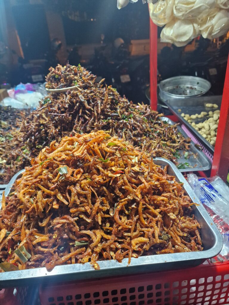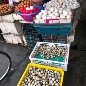 Auf einem der Fotos seht ihr einen Eierstand. Eier werden in Kambodscha wohl in jeder Form und Größe gerne gegessen. Hühnereier, Enteneier und sogar sogenannte „Balut“-Eier – fast entwickelte Entenembryonen – sind weit verbreitet. Letztere gelten als Delikatesse und werden oft mit Limettensaft, Salz und Pfeffer gegessen.