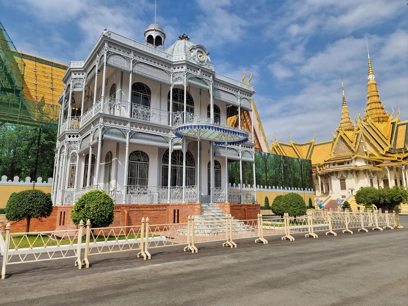 Tatsächlich handelte es sich um die sogenannte Villa Napoléon III. Sie wurde einst in Frankreich für eine Weltausstellung errichtet und später als Geschenk des französischen Kaisers an König Norodom nach Phnom Penh verschifft. Heute steht sie als stummer Zeuge der französischen Kolonialzeit auf dem Gelände des Königspalastes – betreten darf man sie nicht, aber allein ihr Anblick ist beeindruckend genug.