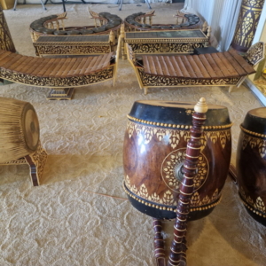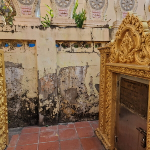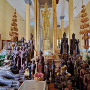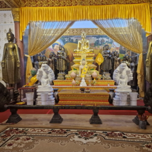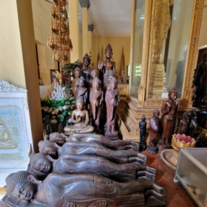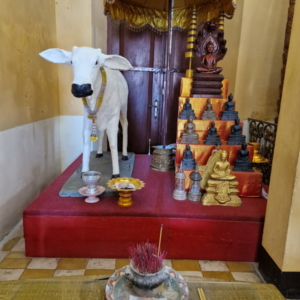 In einem der Räume standen unzählige Buddha-Statuen dicht an dicht – fast wie eine kleine Armee. Zwischen all den Figuren entdeckten wir sogar eine kunstvoll gestaltete Kuhfigur. Ob diese Sammlung zu bestimmten Anlässen besonders hervorgeholt oder arrangiert wird, konnten wir leider nicht herausfinden. Aber der Anblick war eindrucksvoll und ließ viel Raum für Spekulationen und Staunen.