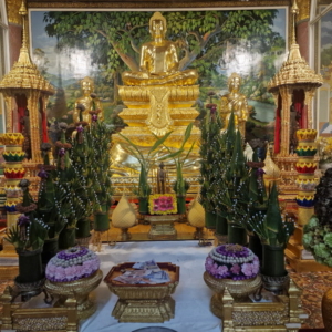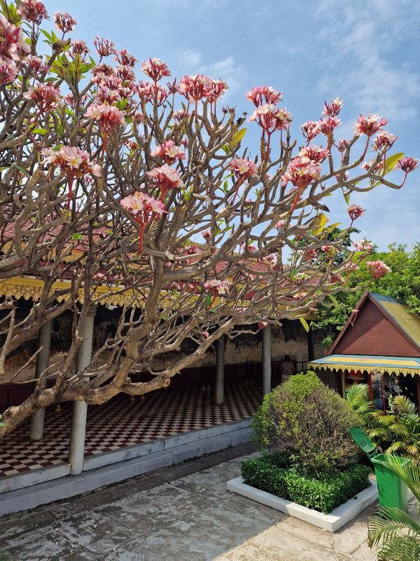 Und dahinter blickten wir auf einen eindrucksvollen Tempel und wenn uns nicht alles täuschte, konnten wir sogar im Hintergrund die goldenen Dächer des Königspalastes erblicken. Auf dem Foto lässt er sich allerdings nur erahnen.