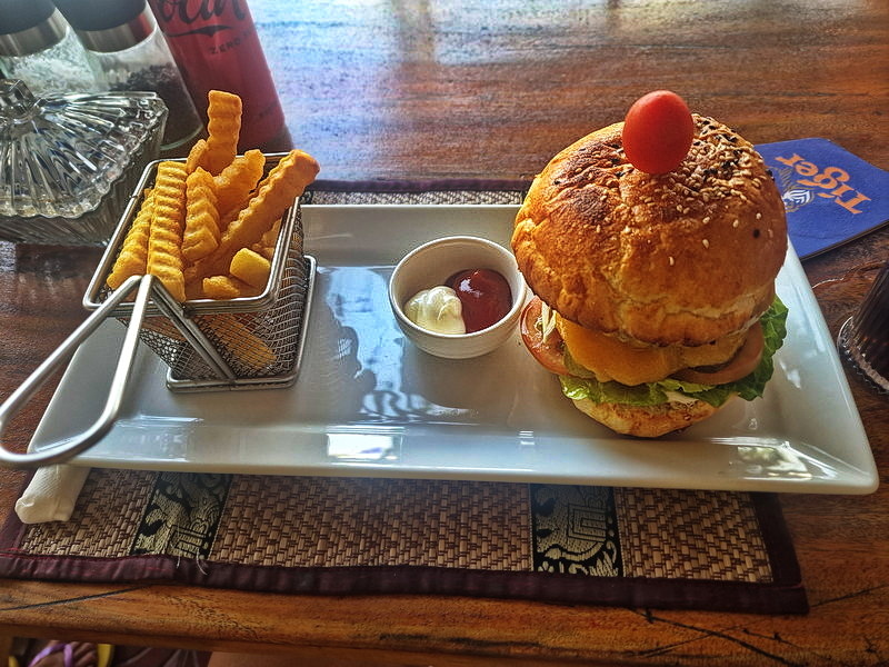 Zum Mittagessen gab’s zur Abwechslung mal Burger mit Pommes – nach 13 Tagen kultureller Eindrücke und landestypischer Gerichte genau die richtige Auszeit