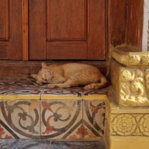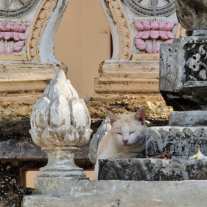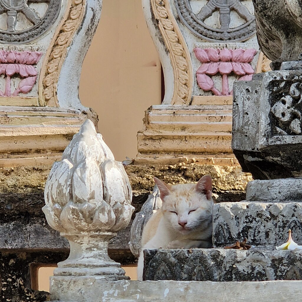 Kommen wir nun zu einem ganz besonderen Detail, das uns immer wieder ein Schmunzeln entlockte: die vielen Katzen in der Anlage. Erfreulicherweise werden sie von den Aufsichtspersonen meist nicht verjagt – im Gegenteil, viele von ihnen scheinen geduldet zu sein und chillen ganz entspannt, teils sogar in den königlichen Hallen. Ich finde, das haben sie sich absolut verdient – schließlich tragen sie mit ihrer Ruhe und Gelassenheit zu einer ganz eigenen, friedlichen Atmosphäre bei.