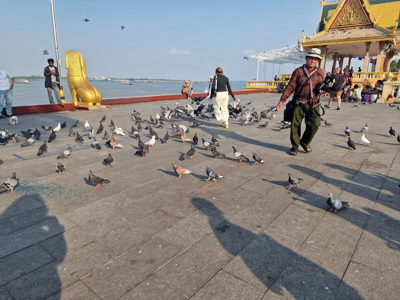 Erstaunt stellten wir fest, dass wir mit unserem Tuk Tuk nicht weit kamen, da die Uferpromenade komplett für den Verkehr gesperrt war. Dies war wohl übliche Praxis am Wochenende in Phnom Penh.