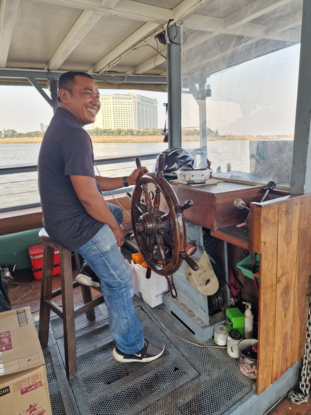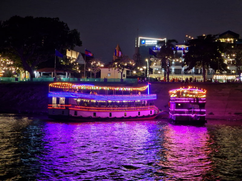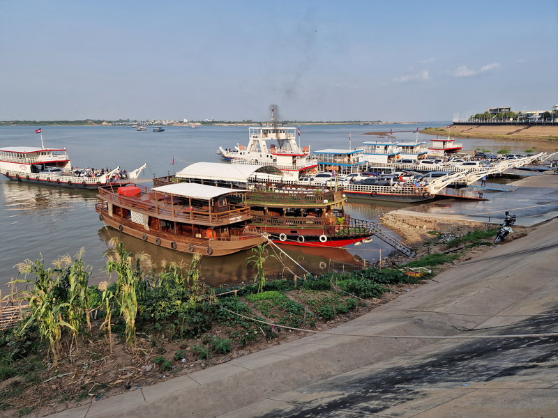 Zum Abschluss unseres Aufenthalts in Phnom Penh stand noch eine Bootsfahrt bei Sonnenuntergang auf dem Programm. Im Vorfeld hatten wir uns ein bestimmtes Boot ausgesucht, das gute Bewertungen bekommen hatte – nun galt es, dieses auch zu finden.
