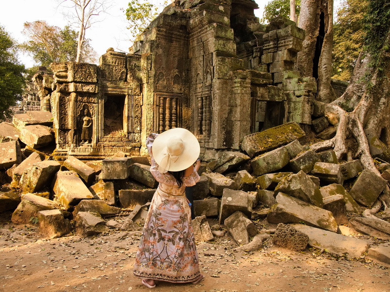 ist einer der bekanntesten Tempel der Angkor-Region – nicht zuletzt wegen der gewaltigen Bäume, die sich über die Mauern und Dächer gelegt haben. Anders als bei Angkor Wat wurde die Anlage größtenteils im Zustand belassen, wie sie nach ihrer Wiederentdeckung vorgefunden wurde. Das Zusammenspiel von Stein und Natur verleiht dem Ort eine ganz eigene Atmosphäre.