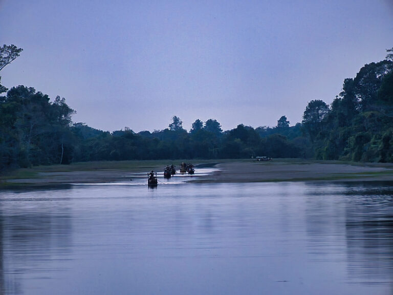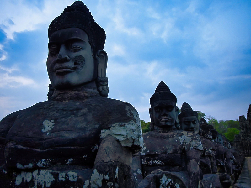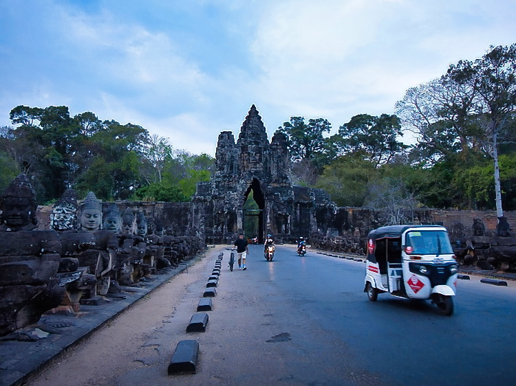 Bei der Ausfahrt aus Angkor Thom hielten wir noch kurz an der Brücke mit den bekannten Dämonenfiguren. Für gute Fotos war es allerdings schon zu dunkel – ein Grund mehr, an einem anderen Tag dorthin zurückzukehren.