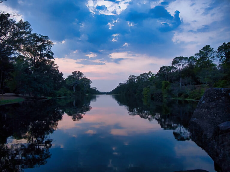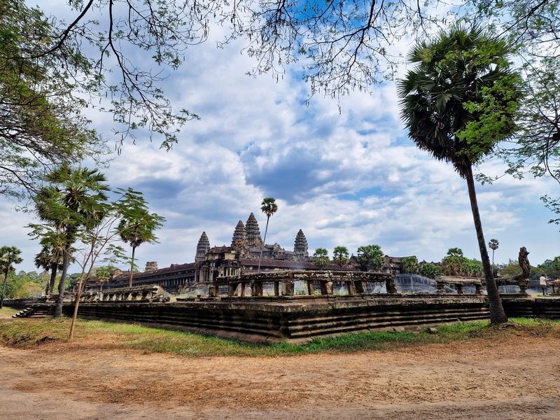 Durch diese spontane Routenwahl verpassten wir leider den klassischen Rückblick auf Angkor Wat – frontal über den Damm, wie er in fast jedem Reiseführer gezeigt wird. Aber gut: Shit happens. Unser Blick zurück war trotzdem nicht schlecht.