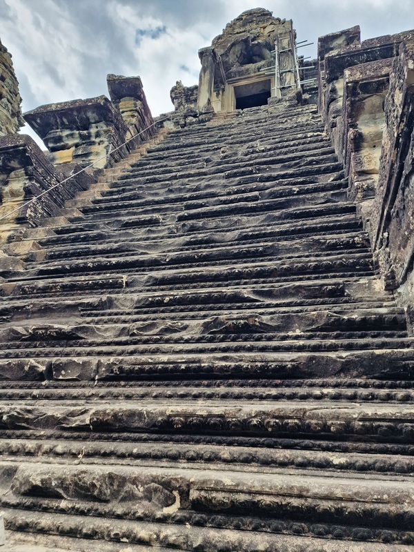 In der Mitte führte eine steile Treppe hinauf zum Hauptturm, dem heiligsten Teil der Anlage. Wir verweilten einen Moment auf den Steinterrassen und ließen die Stimmung auf uns wirken. Durch die wenigen Besucher wirkte der Innenhof wie eine Art Schwelle – zwischen der äußeren Welt und dem spirituellen Zentrum von Angkor Wat.