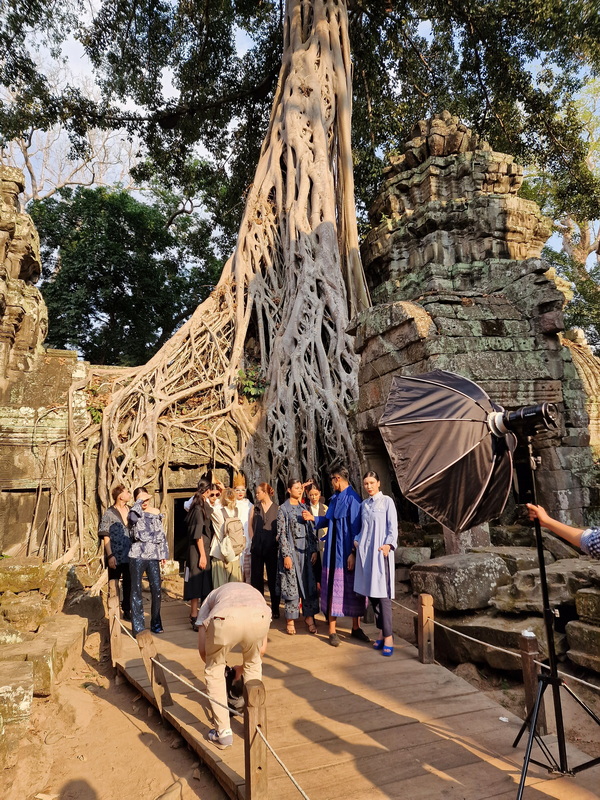 Nach all der Ruhe und Abgeschiedenheit staunten wir nicht schlecht, als wir hinter der nächsten Kurve plötzlich im Stau standen. Die Ursache: Filmaufnahmen. Nach der Kleidung der Models zu urteilen, vermutlich für die kambodschanische Tourismuswerbung. Doch damit nicht genug – nur wenige Meter weiter gerieten wir erneut in eine Menschentraube. Diesmal fanden gerade Fotoaufnahmen eines Modedesigners statt.