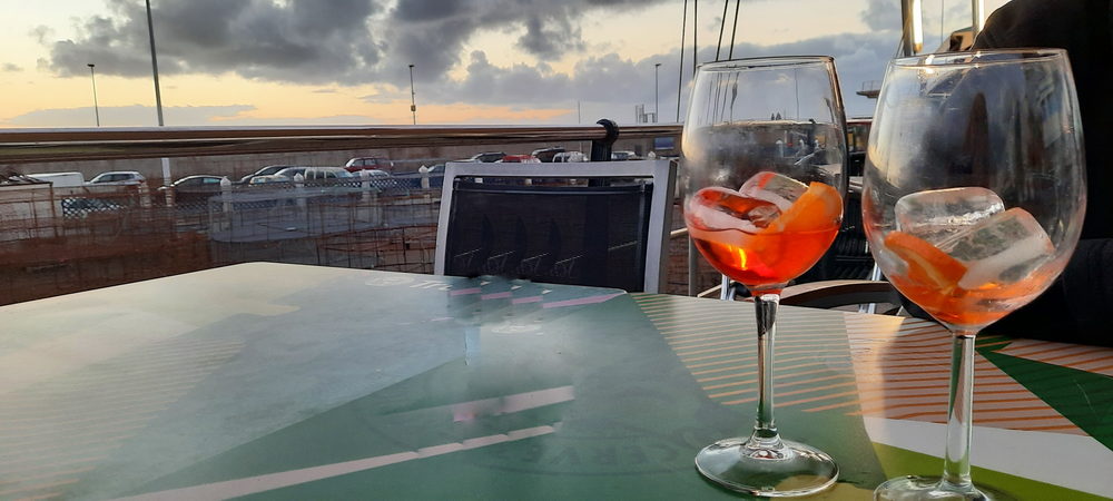 Auf einer gemütlichen Restaurantterrasse genossen wir den ersten Aperitif unserer Reise.