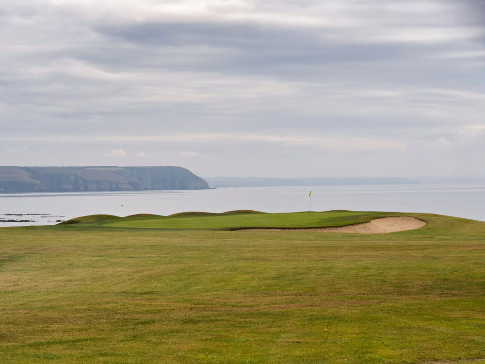 Kurz vor dem Eingangstor zweigte ein Weg zum Golfplatz ab, den die Spieler nutzten, um zu den nächsten Löchern zu gelangen. Ich hoffte, von dort aus einen besseren Blick auf den Leuchtturm zu bekommen, und betrat kurzerhand den Golfplatz – was die Golfer offenbar wenig kümmerte. Sie grüßten freundlich und wussten sofort, wohin ich wollte. Ich war mit Sicherheit nicht die Erste, die diesen kleinen „Umweg“ wählte.