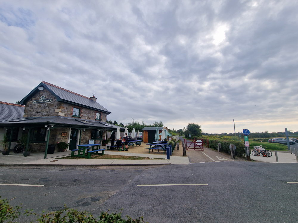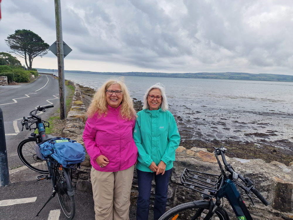 Im Vorfeld hatten wir bei einem Anbieter in Dungarvan zwei Touren-E-Bikes reserviert, die wir nach dem Frühstück abholten. Praktischerweise befand sich die Ausgabe in einem Container direkt an einem großen Parkplatz – zugleich Startpunkt des Radwegs, den wir fahren wollten. Perfekt, denn so konnten wir das Auto einfach stehen lassen.