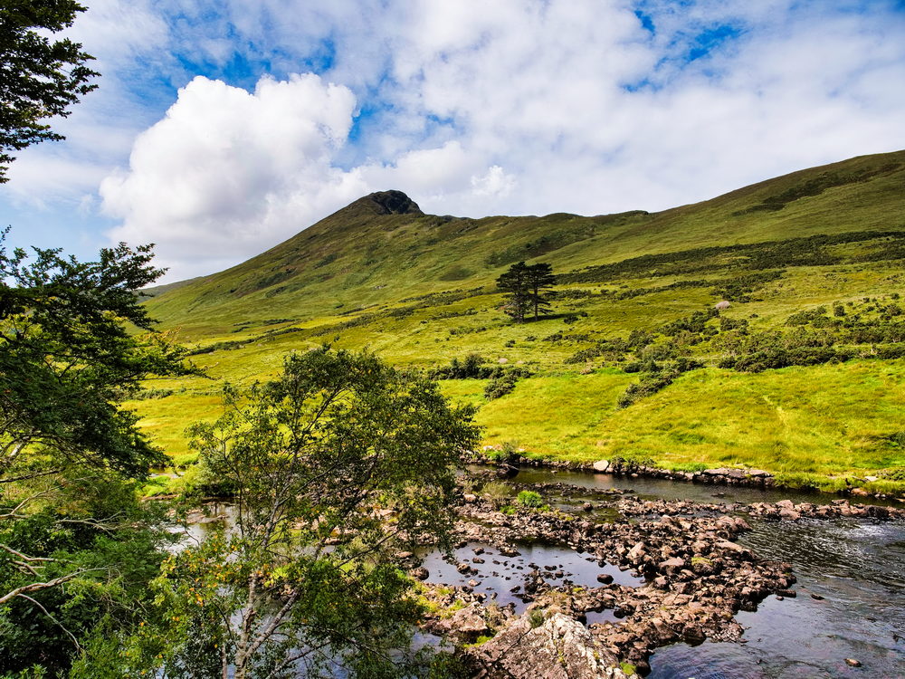 Doch es sah hier wirklich wunderschön aus, und wir waren sofort begeistert. So kam es dann auch, dass wir bei Maam Cross nicht wie ursprünglich geplant geradeaus weiterfuhren, sondern spontan abbogen – unser nächstes Ziel waren Wasserfälle. Auf Utes Wunsch entschieden wir uns für die Aasleagh Falls, da sie deutlich näher lagen als der ursprünglich geplante Lough-Nafooey-Waterfall. Mir war das völlig recht, zumal dieser Wasserfall ohnehin direkt auf dem Weg zu unserem nächsten Ziel lag.