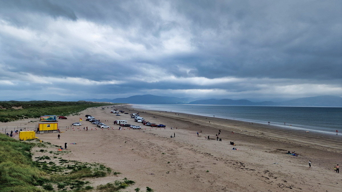 Ehe wir uns versahen, kamen wir an einem unglaublich langen und breiten Strand an. Schade, dass das Wetter nicht zum längeren Verweilen einlug. So beließen wir es bei einem kurzen Fotostopp.