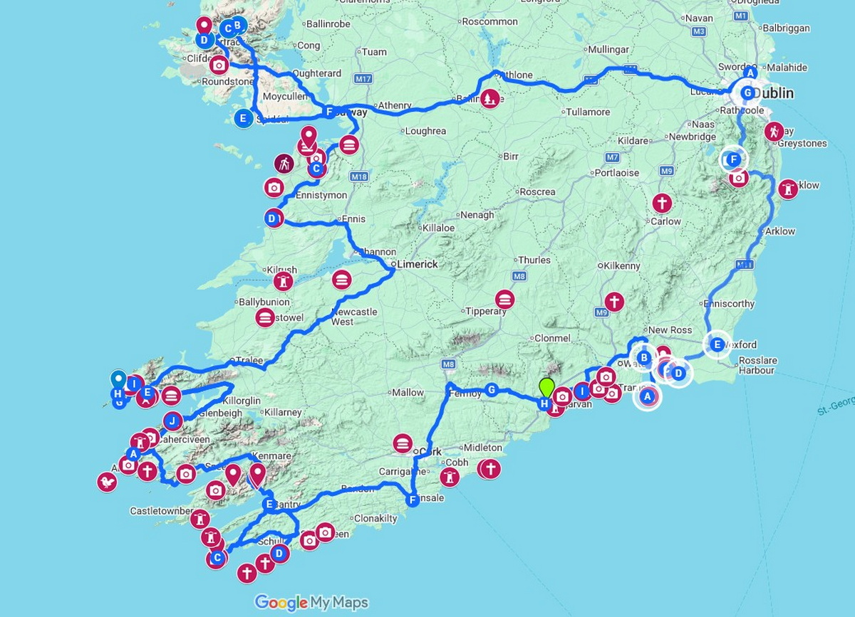 Danach ging es entlang der Südküste weiter Richtung Osten, entlang der Copper Coast, bevor die Reise durch die Wicklow Mountains führte. Von dort aus kehrten wir schließlich wieder nach Dublin zurück.