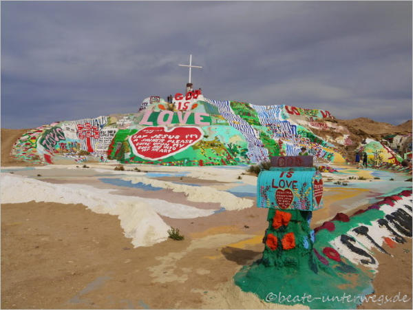 2,5 Meilen Slap City, wo ihr linker Hand schon den Salvation Mountain erblickt.