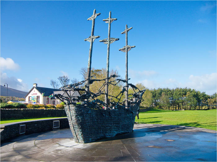 Das Nationale Hunger-Denkmal befindet sich am Fuße des Croagh Patrick in Murrisk und bietet