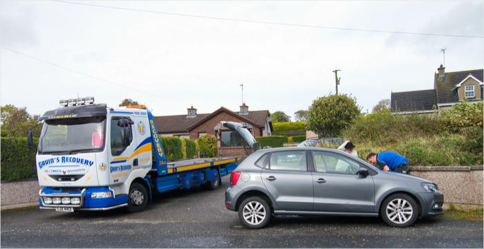 Der Mann vom Abschleppdienst war sich nicht sicher ob der Reifen, den er ohne den passenden
