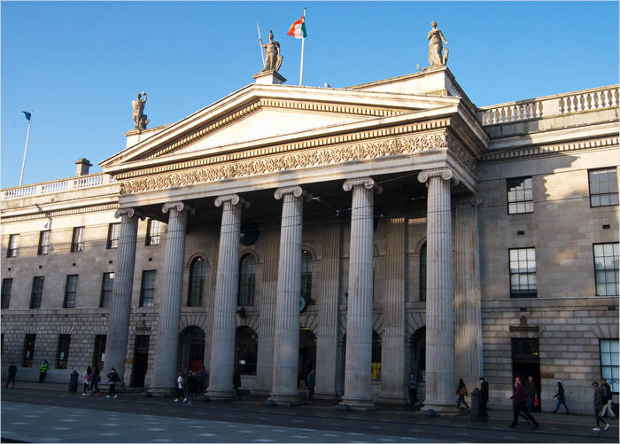 The Spire + schöne Gebäude entland der O‘Connell Street