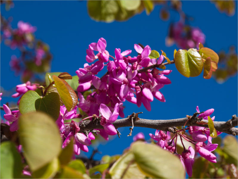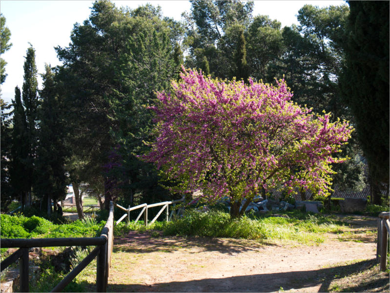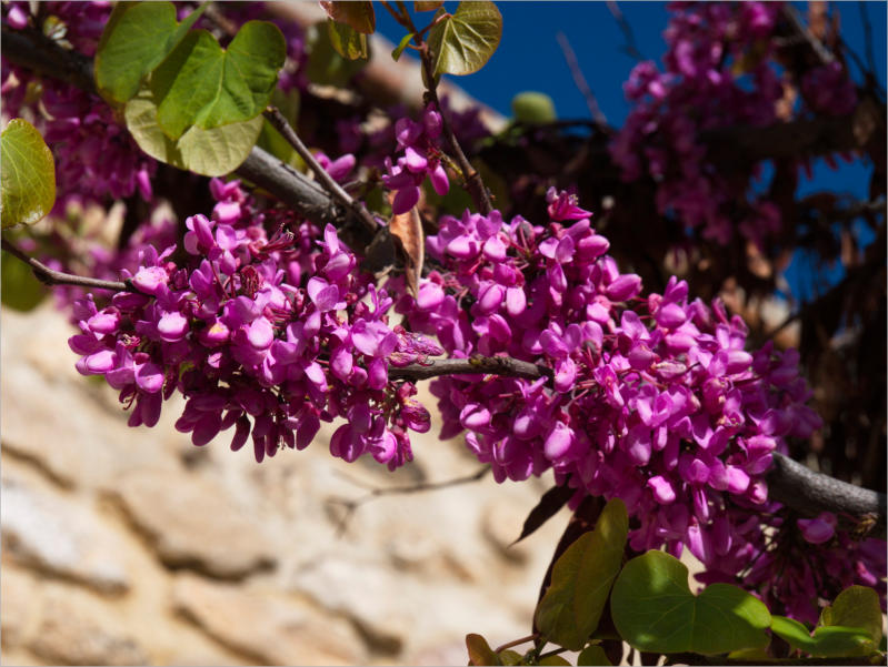 Hier traf ich auf schmucke weiße Häuser und schöne violett leuchtende Bäume.
