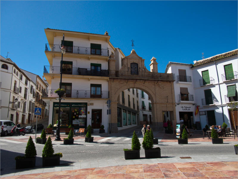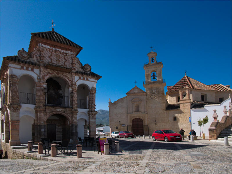 Auf ihrem Vorplatz, der Plaza del Escribano (Platz des Schriftstellers) steht eine Statue des in Antequera