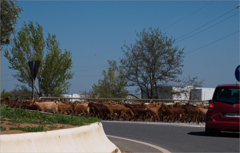 Wie sympathisch! Ziegen haben hier Vorfahrt!