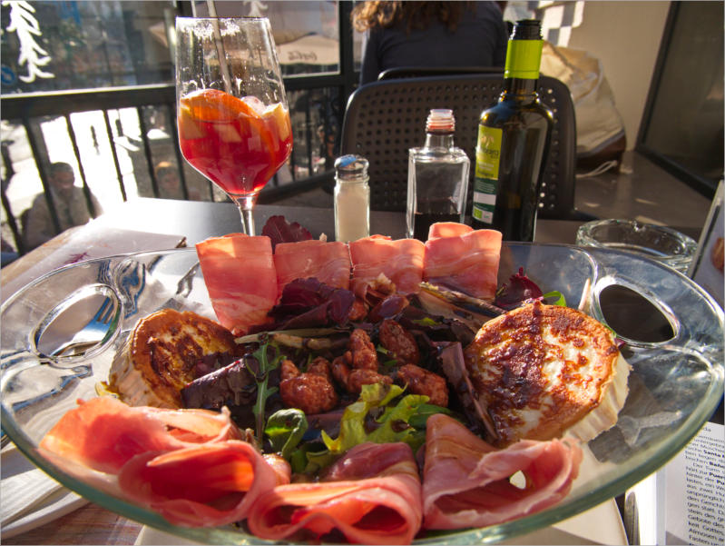 Das Restaurant war schnell gefunden. Ich bestellte mir ein Glas Sangria und einen Ziegenkäsesalat.