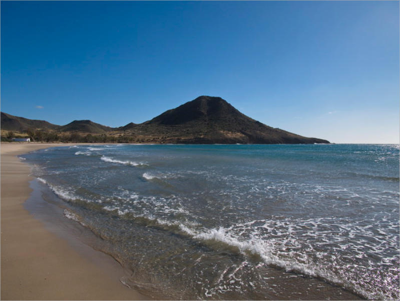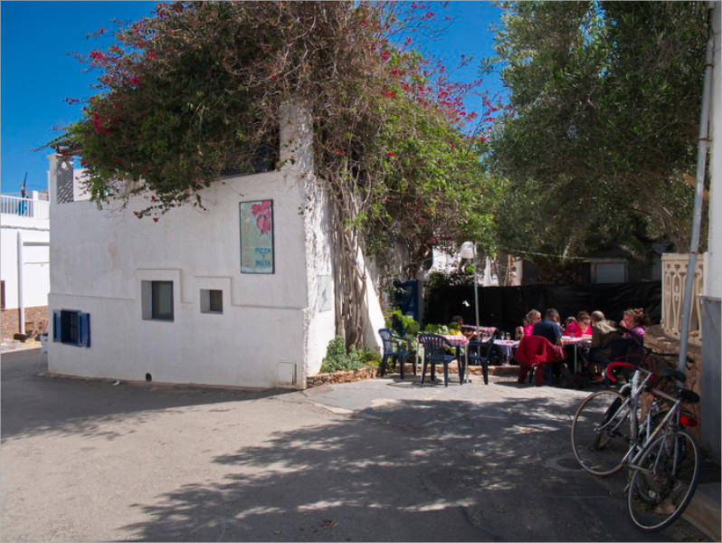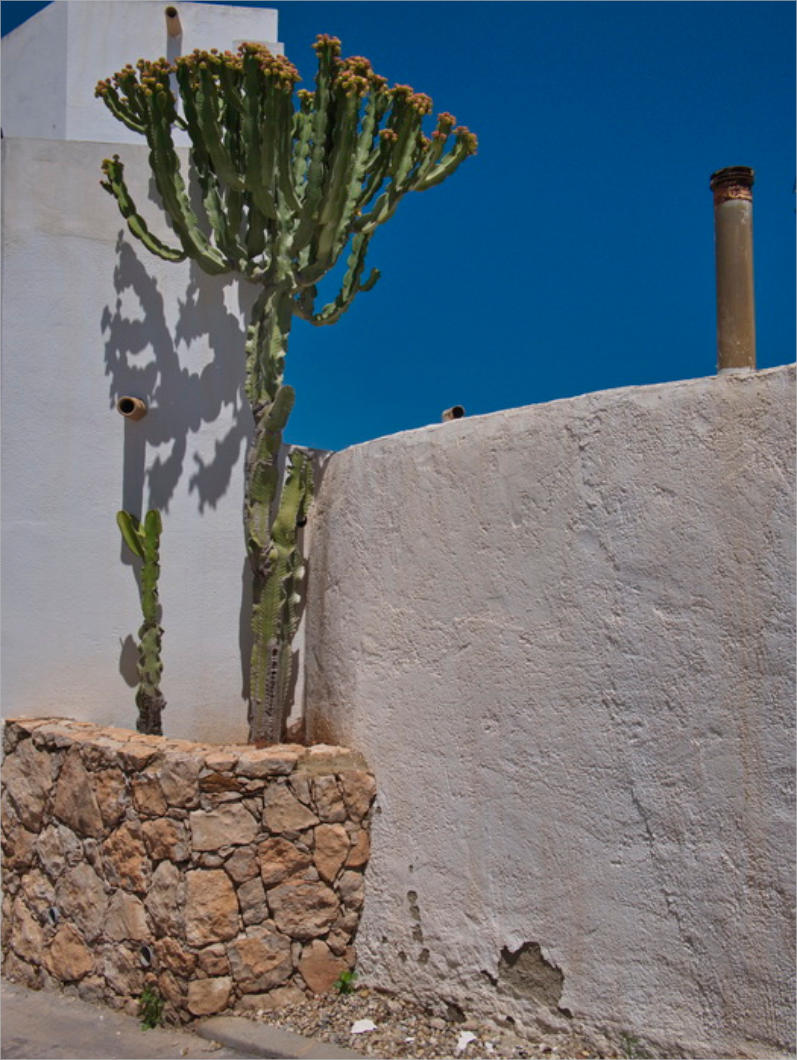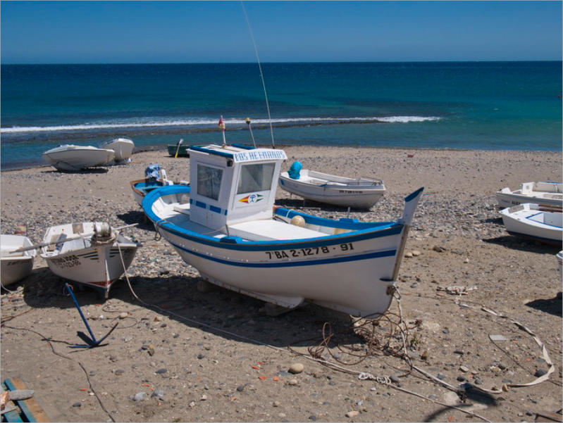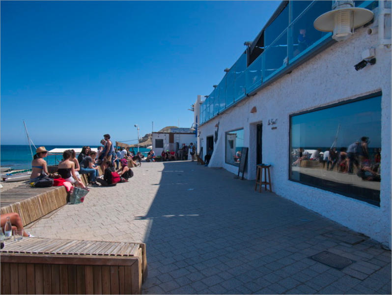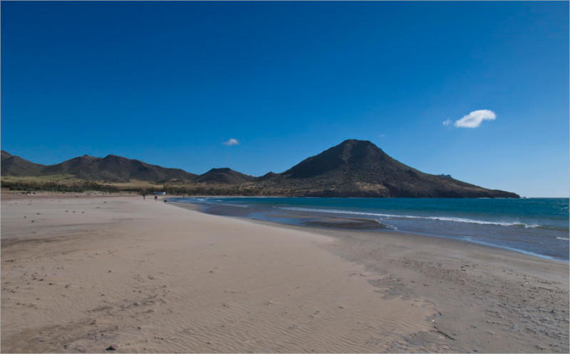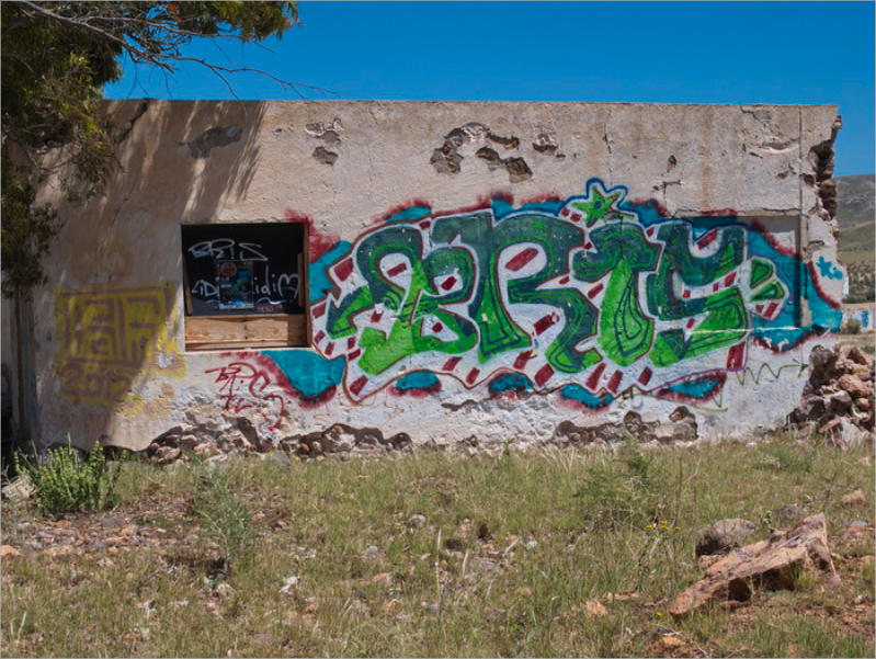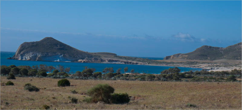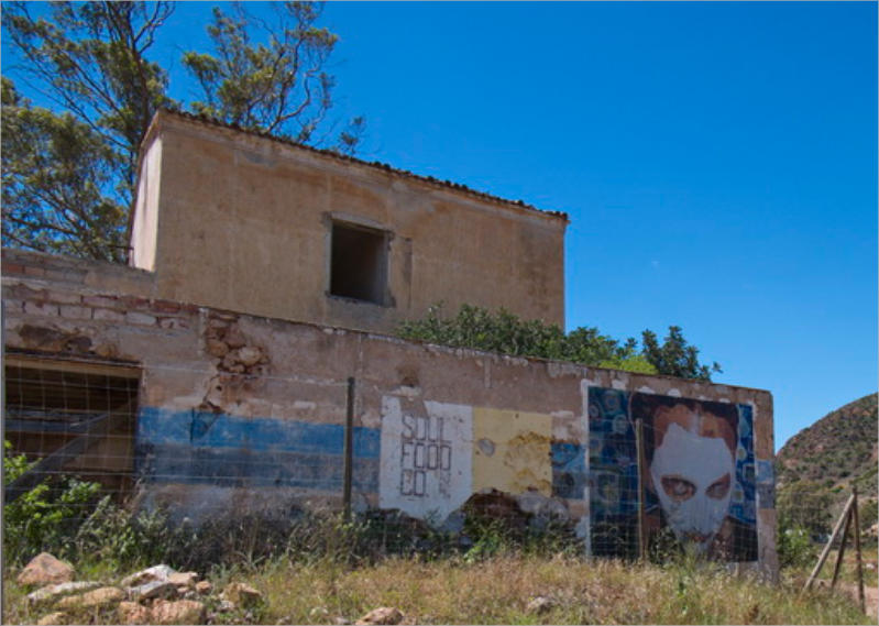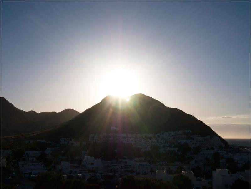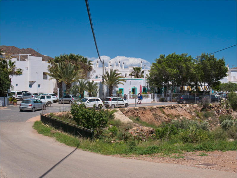 Der Tag fing eigentlich recht vielversprechend mit einem schönen Sonnenaufgang an. Da es noch etwas frisch auf meiner Terrasse war verzog ich mich aber immer wieder ins warme Zimmer. Noch war es windstill und ich ahnte noch nicht, dass sich der heutige Tag so ganz anders als geplant abspielen würde.Geplant hatte ich heute nämlich eigentlich recht wenig. Heute sollte mein Strandtag sein. Darauf hatte ich mich schon seit Tagen gefreut.Gut gelaunt packte ich meine Tasche mit den Strandsachen und zog kurz darauf los. Einer der naturbelassenen Strände rund um San José im Naturpark Capo de Gata war mein Ziel.Kurz nachdem ich den Ort hinter mir gelassen hatte fuhr ich - wie nicht anders erwartet - auf einer Staubpiste. Nach wenigen Metern erreichte mich hier die nächste Überraschung. Ich erblickte schon wieder eine schöne Windmühle. Ich parkte daher am Straßenrand um die restaurierte Windmühle zu fotografieren. Hierbei kam ich zum ersten Mal mit dem heftigen Wind, der mich heute den ganzen Tag begleiten würde, in Berührung.Ab der 2007 restaurierten Windmühle „Molino del Collado de los Genoveses“ändert sich das Landschaftsbild.Ab hier beginnt der wildeste Teil des NaturparkesCabo de Gata in der andalusischen Provinz Almeria. Von der Windmühle aus schweift der Blick hinab in eine Ebene, die bisher von jeglichen Auswüchsen der modernen Welt verschont wurde. Es gibt weder Hotels noch Restaurants und keinerlei Touristenattraktionen.Lediglich eine schmale, kaum gepflegte Sandpiste führt durch den Naturpark der offiziell auf den Namen „Parque Natural Cabo de Gata-Níjar“ heißt, zu den naturbelassenen Stränden.Eigentlich wollte ich ja direkt bis zum weiter entfernten Punta del Monsul durchfahren, denn dieser sollte einer der schönsten Strände in diesem Gebiet sein. Aber der heftige Wind führte dazu, dass ich gar nicht weiter fuhr sondern erst einmal zu leichter zu erreichenden Playa de Los Genoveses fuhr.Obwohl heute Sonntag war, standen kaum Fahrzeuge auf dem Parkplatz. Und die die dort standen gehörten meist Campern, die jetzt kurz nach 9:30 Uhr noch schliefen.Obwohl mir der Wind den Sand nur so ins Gesicht peitschte ging ich an den Strand. Ich kenne viele Fotografen, die bei diesem Wind ihre Kamera gar nicht ausgepackt hätten, aber ich kenne da nix und kann euch jetzt schon sagen, meine Kamera und auch die Objektive haben es gut überlebt. Wenn man sich die Wellen im Sand anschaut, kann man sich vielleicht vorstellen wie windig es war. Außerdem sprach natürlich die Leere am Strand dafür, dass heute nicht gerade Badewetter war, obwohl der fast wolkenlose Himmel dies nicht vermuten ließ. Könnt ihr die Windböen sehen, wie sie den Sand den Strand hinauf jagen?Ein Verrückter hat sich dann doch noch nackig ins Wasser gewagt.Ich hatte nach einer halben Stunde genug Sand zwischen den Zähnen und verwarf erst einmal meinen heutigen Plan. Plan B musste her. Da jetzt erst einmal nichts aus meinem Strandtag werden würde überlegte ich, was ich den restlichen Vormittag noch so anstellen könnte. Nach einem kurzen Blick auf die Landkarte beschloss ich bereits heute die Umgebung zu erkunden. Dies hatte ich eigentlich erst für morgen geplant. Da mir an der Küste der Wind zu stark bließ entschied ich mich dafür erst einmal ins Landesinnere zu fahren. Kurz vor meinem Reiseantritt hatte ich in einem der dritten Programme eine Dokumentation über einen kleinen Ort ganz in der Nähe von San José gesehen. In diesem Ort wurden wurden wegen seinem Erscheinungsbild, das in den 60er Jahren des letzten Jahrhunderts sehr an ein mexikanisches Dorf erinnerte, einige Italo-Western gedreht.Nach knapp 20 Minuten Fahrt erreichte ichSchon am Dorfeingang war klar, um was es hier ging.Gespannt fuhr ich weiter.So richtig hatte ich leider nicht mehr im Gedächtnis, was in der Dokumentation so alles gezeigt wurde. Ich konnte mich nur noch daran erinnern, dass einer der Einwohner (inzwischen ein Mann um die 50/60) , der die Reporterin durch den Ort führte erzählte, dass er als kleiner Junge als Statist bei einigen berühmten Spaghetti-Western mitgewirkt hatte. An einem kleinen Platz suche ich mir erst einmal einen Parkplatz. Von hier aus erkundete ich nun das Dorf. Wie sich heraus stellte hatte ich in der Avenida Sergio Leone geparkt. Daran konnte ich mich noch erinnern. Einige Straßen im Dorf waren nach Protagonisten der Italo-Western benannt. Ich war gespannt, ob ich alle finden würde.Ich muss ja mal gestehen, dass ich von Italo-Western überhaupt keine Ahnung habe. Bisher hatte und habe ich bis auf „Spiel mir das Lied vom Tod“ nicht einen Italo-Western gesehen. Wahrscheinlich war es daher kein Wunder, dass ich mich nicht wie im wilden Westen bzw. wie in einem mexikanischen Dorf fühlte. Ich fand das Dorf zwar recht pittoresk, aber das war es dann auch schon. Schaut am Besten mal selbst:Es scheint auf jeden Fall als würden die Bewohner hier sehr gerne backen.Bei meinem Rundgang hatte ich zwar nicht das mexikanische Dorf Aguas Caliente, dafür aber eine kleine Tienda entdeckt, die heute am Sonntag sogar geöffnet hatte. So kam ich wenigstens an eine Flasche Wasser und etwas Obst. Ein gutes Gefühl, hier wenigstens etwas die Wirtschaft angekurbelt zu haben, gab es quasi umsonst dazu. Ich beschloss weiterzuziehen. Auf der Fahrt aus dem Dorf hinaus fiel mir dann doch noch eine Infotafel auf. Auf dieser waren die Drehorte mit grünen Punkten markiert. Aha, dachte ich bei mir. Da gibt es wohl doch noch etwas mehr. Ich parkte daher erneut und zog noch einmal los. Als erstes entdeckte ich den Platz an dem das Schlussduell aus „Für ein paar Dollar mehr“ stattgefunden hat. Wer den Film kennt, wird diesen Ort an dem sich Lee van Cleef und Gian Maria Volonté, unter den Blicken von Clint Eastwood, ein letztes Duell lieferten, erkennen. Hier findet ihr die Szene als Youtube-VideoNachdem ich die erste Location ausgemacht hatte, folgten natürlich weitere.Inzwischen machte es mir richtig Spaß