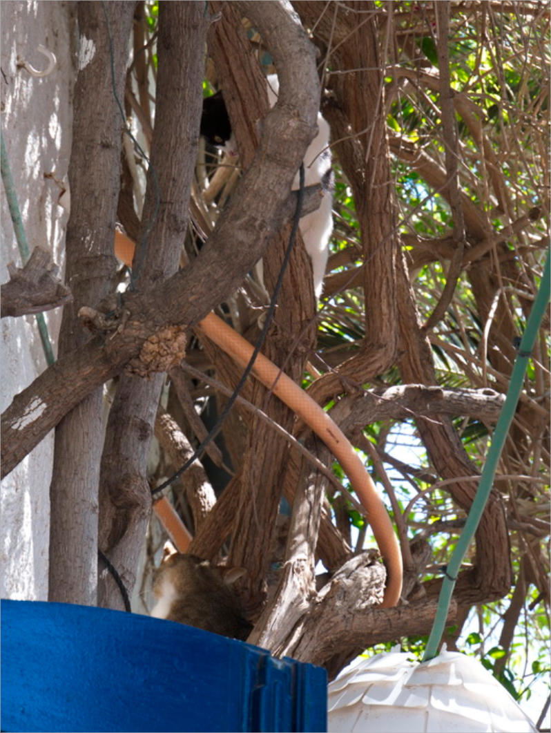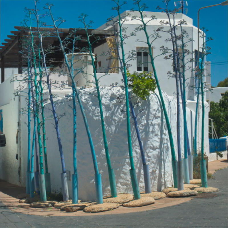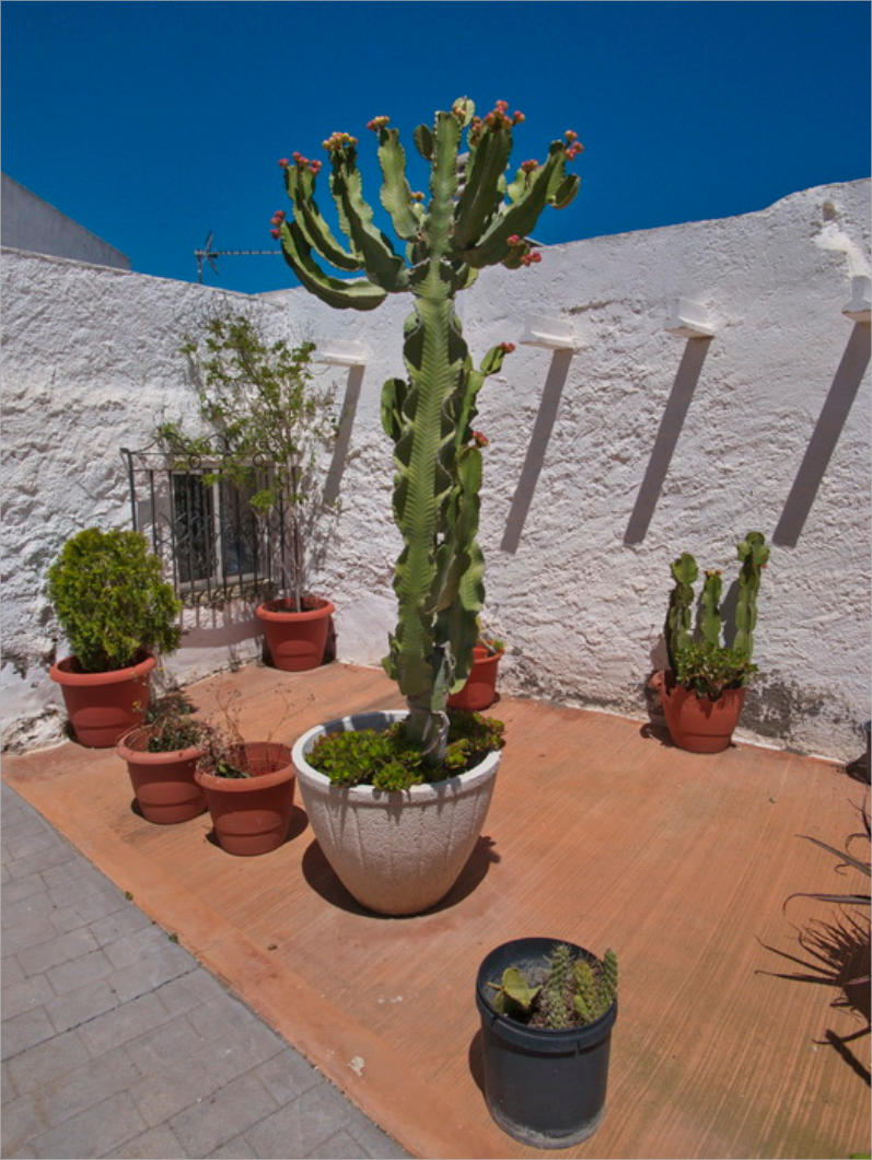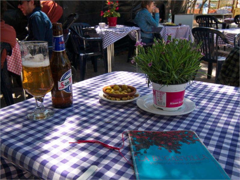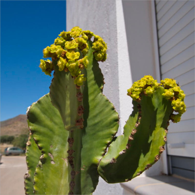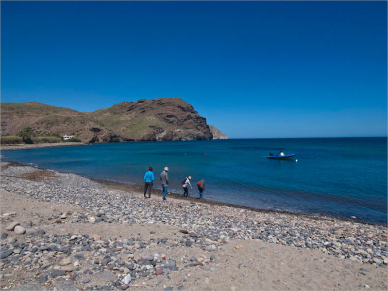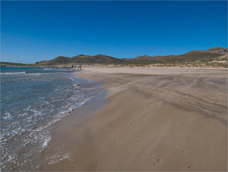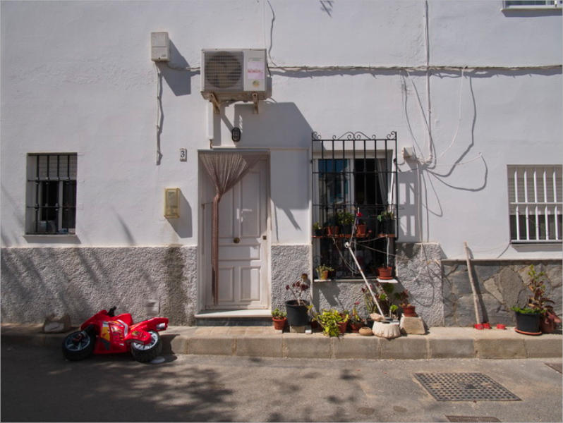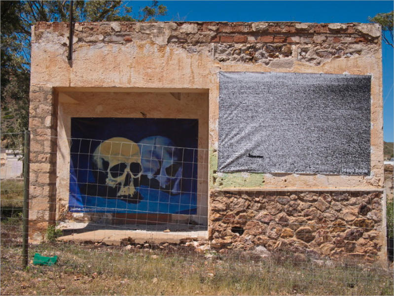 Der Tag fing eigentlich recht vielversprechend mit einem schönen Sonnenaufgang an. Da es noch etwas frisch auf meiner Terrasse war verzog ich mich aber immer wieder ins warme Zimmer. Noch war es windstill und ich ahnte noch nicht, dass sich der heutige Tag so ganz anders als geplant abspielen würde.Geplant hatte ich heute nämlich eigentlich recht wenig. Heute sollte mein Strandtag sein. Darauf hatte ich mich schon seit Tagen gefreut.Gut gelaunt packte ich meine Tasche mit den Strandsachen und zog kurz darauf los. Einer der naturbelassenen Strände rund um San José im Naturpark Capo de Gata war mein Ziel.Kurz nachdem ich den Ort hinter mir gelassen hatte fuhr ich - wie nicht anders erwartet - auf einer Staubpiste. Nach wenigen Metern erreichte mich hier die nächste Überraschung. Ich erblickte schon wieder eine schöne Windmühle. Ich parkte daher am Straßenrand um die restaurierte Windmühle zu fotografieren. Hierbei kam ich zum ersten Mal mit dem heftigen Wind, der mich heute den ganzen Tag begleiten würde, in Berührung.Ab der 2007 restaurierten Windmühle „Molino del Collado de los Genoveses“ändert sich das Landschaftsbild.Ab hier beginnt der wildeste Teil des NaturparkesCabo de Gata in der andalusischen Provinz Almeria. Von der Windmühle aus schweift der Blick hinab in eine Ebene, die bisher von jeglichen Auswüchsen der modernen Welt verschont wurde. Es gibt weder Hotels noch Restaurants und keinerlei Touristenattraktionen.Lediglich eine schmale, kaum gepflegte Sandpiste führt durch den Naturpark der offiziell auf den Namen „Parque Natural Cabo de Gata-Níjar“ heißt, zu den naturbelassenen Stränden.Eigentlich wollte ich ja direkt bis zum weiter entfernten Punta del Monsul durchfahren, denn dieser sollte einer der schönsten Strände in diesem Gebiet sein. Aber der heftige Wind führte dazu, dass ich gar nicht weiter fuhr sondern erst einmal zu leichter zu erreichenden Playa de Los Genoveses fuhr.Obwohl heute Sonntag war, standen kaum Fahrzeuge auf dem Parkplatz. Und die die dort standen gehörten meist Campern, die jetzt kurz nach 9:30 Uhr noch schliefen.Obwohl mir der Wind den Sand nur so ins Gesicht peitschte ging ich an den Strand. Ich kenne viele Fotografen, die bei diesem Wind ihre Kamera gar nicht ausgepackt hätten, aber ich kenne da nix und kann euch jetzt schon sagen, meine Kamera und auch die Objektive haben es gut überlebt. Wenn man sich die Wellen im Sand anschaut, kann man sich vielleicht vorstellen wie windig es war. Außerdem sprach natürlich die Leere am Strand dafür, dass heute nicht gerade Badewetter war, obwohl der fast wolkenlose Himmel dies nicht vermuten ließ. Könnt ihr die Windböen sehen, wie sie den Sand den Strand hinauf jagen?Ein Verrückter hat sich dann doch noch nackig ins Wasser gewagt.Ich hatte nach einer halben Stunde genug Sand zwischen den Zähnen und verwarf erst einmal meinen heutigen Plan. Plan B musste her. Da jetzt erst einmal nichts aus meinem Strandtag werden würde überlegte ich, was ich den restlichen Vormittag noch so anstellen könnte. Nach einem kurzen Blick auf die Landkarte beschloss ich bereits heute die Umgebung zu erkunden. Dies hatte ich eigentlich erst für morgen geplant. Da mir an der Küste der Wind zu stark bließ entschied ich mich dafür erst einmal ins Landesinnere zu fahren. Kurz vor meinem Reiseantritt hatte ich in einem der dritten Programme eine Dokumentation über einen kleinen Ort ganz in der Nähe von San José gesehen. In diesem Ort wurden wurden wegen seinem Erscheinungsbild, das in den 60er Jahren des letzten Jahrhunderts sehr an ein mexikanisches Dorf erinnerte, einige Italo-Western gedreht.Nach knapp 20 Minuten Fahrt erreichte ichSchon am Dorfeingang war klar, um was es hier ging.Gespannt fuhr ich weiter.So richtig hatte ich leider nicht mehr im Gedächtnis, was in der Dokumentation so alles gezeigt wurde. Ich konnte mich nur noch daran erinnern, dass einer der Einwohner (inzwischen ein Mann um die 50/60) , der die Reporterin durch den Ort führte erzählte, dass er als kleiner Junge als Statist bei einigen berühmten Spaghetti-Western mitgewirkt hatte. An einem kleinen Platz suche ich mir erst einmal einen Parkplatz. Von hier aus erkundete ich nun das Dorf. Wie sich heraus stellte hatte ich in der Avenida Sergio Leone geparkt. Daran konnte ich mich noch erinnern. Einige Straßen im Dorf waren nach Protagonisten der Italo-Western benannt. Ich war gespannt, ob ich alle finden würde.Ich muss ja mal gestehen, dass ich von Italo-Western überhaupt keine Ahnung habe. Bisher hatte und habe ich bis auf „Spiel mir das Lied vom Tod“ nicht einen Italo-Western gesehen. Wahrscheinlich war es daher kein Wunder, dass ich mich nicht wie im wilden Westen bzw. wie in einem mexikanischen Dorf fühlte. Ich fand das Dorf zwar recht pittoresk, aber das war es dann auch schon. Schaut am Besten mal selbst:Es scheint auf jeden Fall als würden die Bewohner hier sehr gerne backen.Bei meinem Rundgang hatte ich zwar nicht das mexikanische Dorf Aguas Caliente, dafür aber eine kleine Tienda entdeckt, die heute am Sonntag sogar geöffnet hatte. So kam ich wenigstens an eine Flasche Wasser und etwas Obst. Ein gutes Gefühl, hier wenigstens etwas die Wirtschaft angekurbelt zu haben, gab es quasi umsonst dazu. Ich beschloss weiterzuziehen. Auf der Fahrt aus dem Dorf hinaus fiel mir dann doch noch eine Infotafel auf. Auf dieser waren die Drehorte mit grünen Punkten markiert. Aha, dachte ich bei mir. Da gibt es wohl doch noch etwas mehr. Ich parkte daher erneut und zog noch einmal los. Als erstes entdeckte ich den Platz an dem das Schlussduell aus „Für ein paar Dollar mehr“ stattgefunden hat. Wer den Film kennt, wird diesen Ort an dem sich Lee van Cleef und Gian Maria Volonté, unter den Blicken von Clint Eastwood, ein letztes Duell lieferten, erkennen. Hier findet ihr die Szene als Youtube-VideoNachdem ich die erste Location ausgemacht hatte, folgten natürlich weitere.Inzwischen machte es mir richtig Spaß