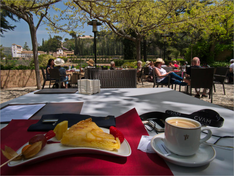 Der Blick auf die Generalife war wirklich sehr schön. Kaffee und Kuchen war sehr lecker und nicht