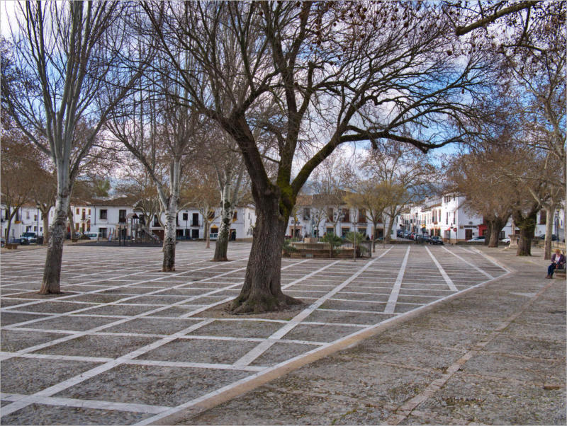 Durch die Puerta de Almocábar gelangte ich an den gestern noch so belebten Platz. Heute Morgen lag er