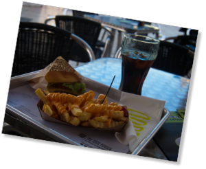 Hier bestellte ich mir ein Menue, das ich im Außenbereich des Lokals