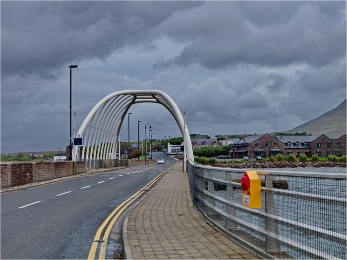 Über dem Achill Sound: Rückblick auf die interessante Brücke.